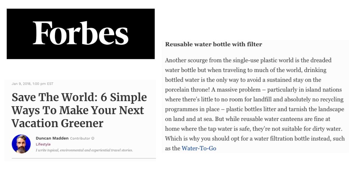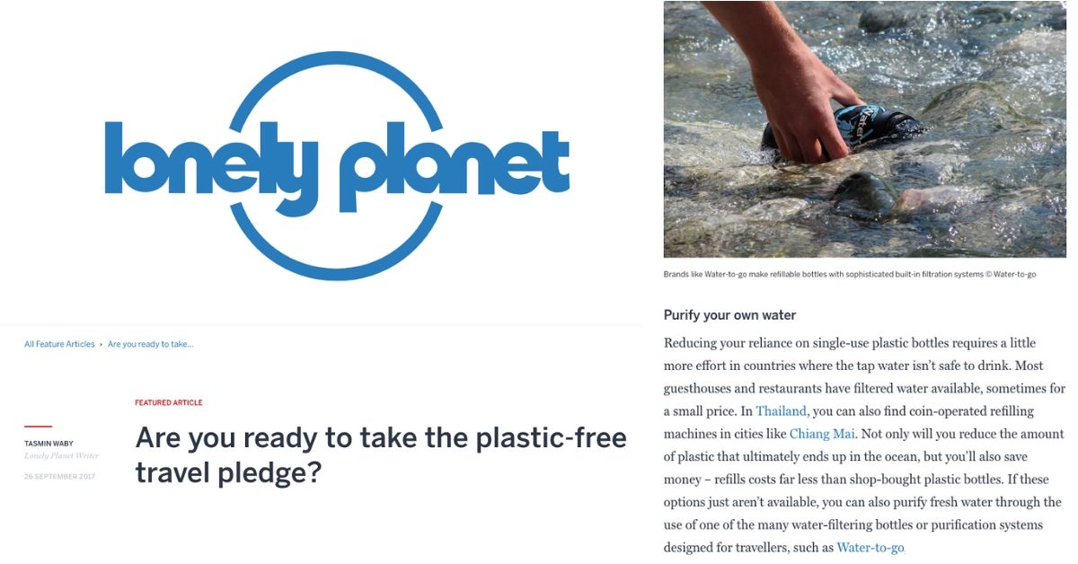 Ever since we started in 2010, Water-to-Go bottles have been used all over the world by all sorts of people including travellers, outdoor enthusiasts, athletes, backpackers and adventurers to ensure they stay hydrated and single-use plastic free wherever they are. Have a look at our customer testimonials to hear how Water-to-Go gave them peace of mind.