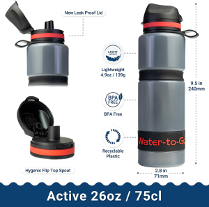 1) Water-to-Go uses mechanical filtration; a very small pore size which stops contaminants passing through.