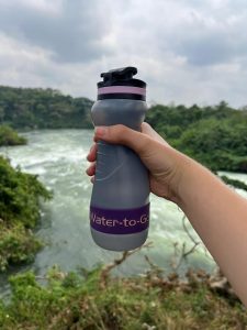Friends recommended that if I was going to Uganda as a volunteer I should take a water to Go bottle to filter any water in camp, from taps or in bottles…and here it is my sugarcane 55 cls bottle in my hand in Uganda!